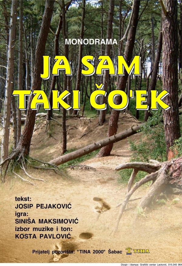 У биоскопској сали Библиотеке "Милован Глишић" у Љубовији данас је на програму монодрама "Ја сам так'и чо'ек" Синише Максимовића, глумца Народног позоришта из Шапца. Представа је настала по тексту Јосипа Пејаковића. Представа почиње у 20 часова, а улаз је бесплатан.