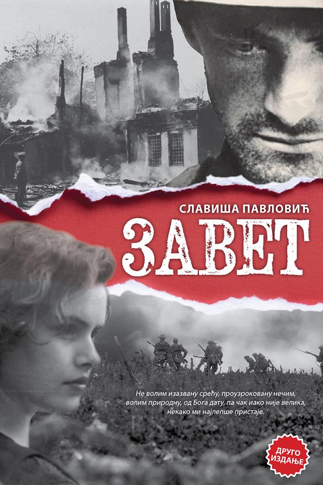 Роман "Завет" је ратна и љубавна прича инспирисана истинитим догађајем која прати живот српског војника током Великог рата, од Битке на Мачковом камену до завршетка рата. Друго издање романа "Завет" садржи и 25 фотографија из Првог светског рата насталих у објективу ратних репортера и војника.